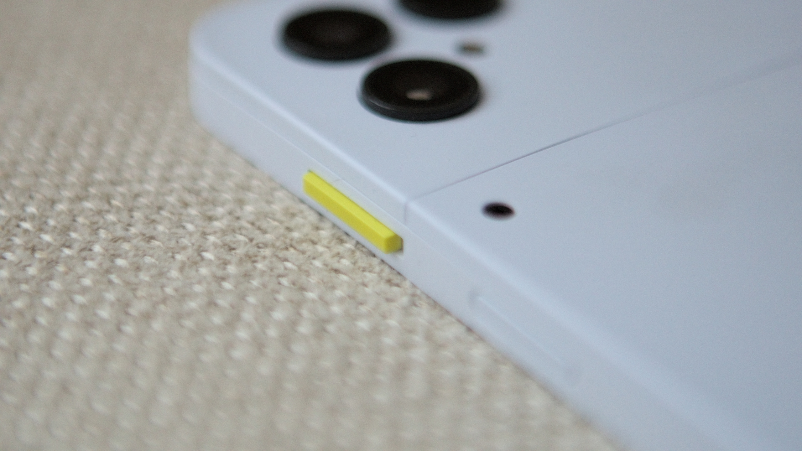 Yellow privacy switch on the Fairphone 6